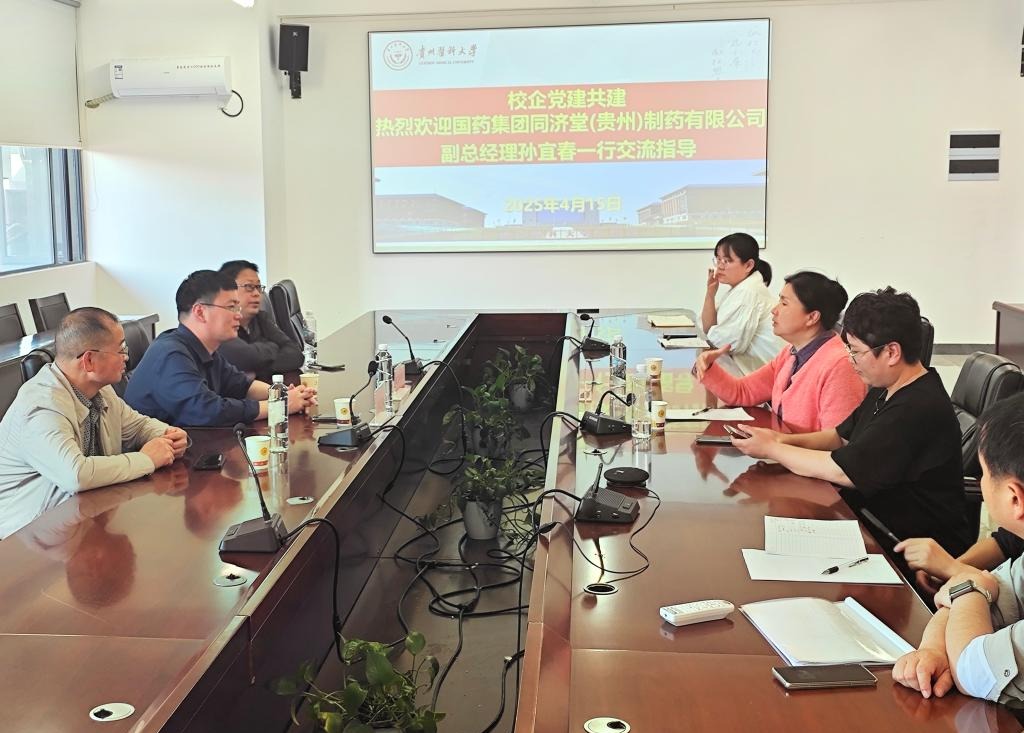 2025年4月15日,国药集团同济堂(贵州)制药有限公司副总经理孙宜春一行到mk体育就双方围绕科技创新、人才培养、产业协同等议题展开深入交流,校企党建共建促发展,共同探讨校企合作新路径。委书记高秀丽、研究生科、相关教师代表参加,会议由高秀丽主持。