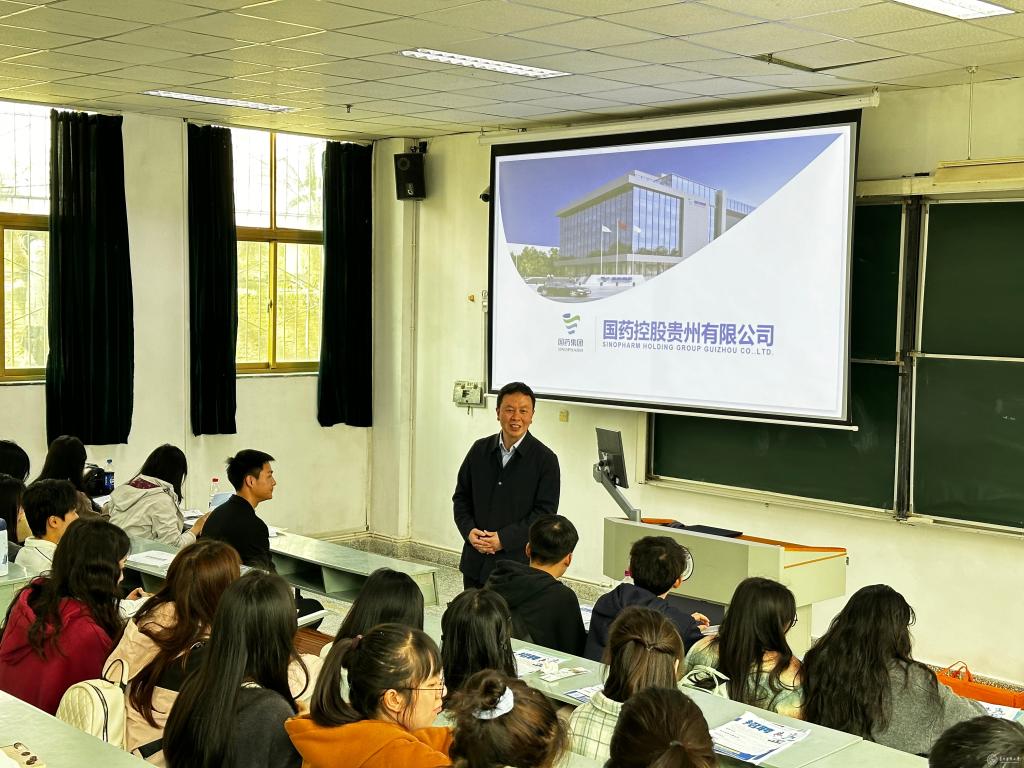 3月22日,国药控股集团贵州有限公司来校开展校园招聘专场宣讲。公司党委副书记汤磊、国药控股集团人力资源部经理邓跃武出席,委副书记包欢欢主持宣讲会,毕业班辅导员及部分毕业生参加招聘会。