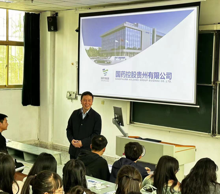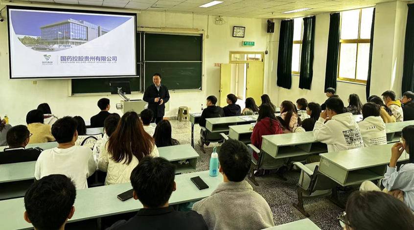 2024年3月22日,国药控股集团贵州有限公司来公司开展校园招聘专场宣讲。公司党委副书记汤磊出席、国药控股集团人力资源部经理邓跃武,委副书记包欢欢主持会议,毕业班辅导员及部分毕业生参加招聘会。