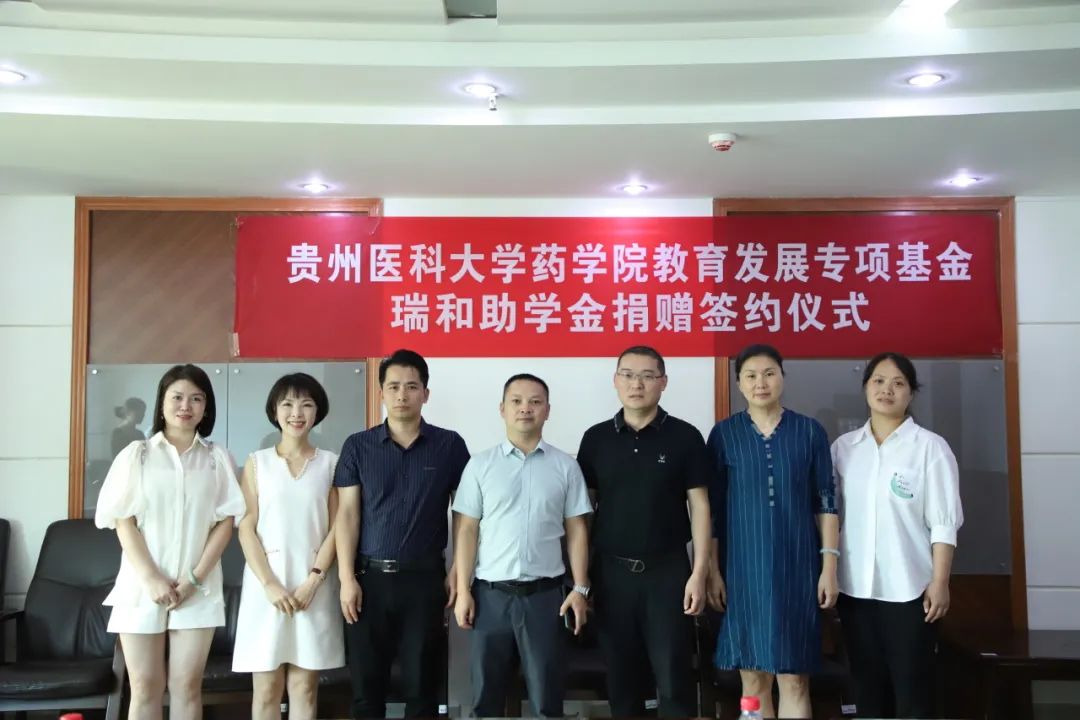 随后,贵州瑞和制药有限公司秘书长陈玉友、mksports发展与规划处副处长、教育发展基金会秘书长彭云、mksports委书记高秀丽现场签订捐赠协议并合影留念。