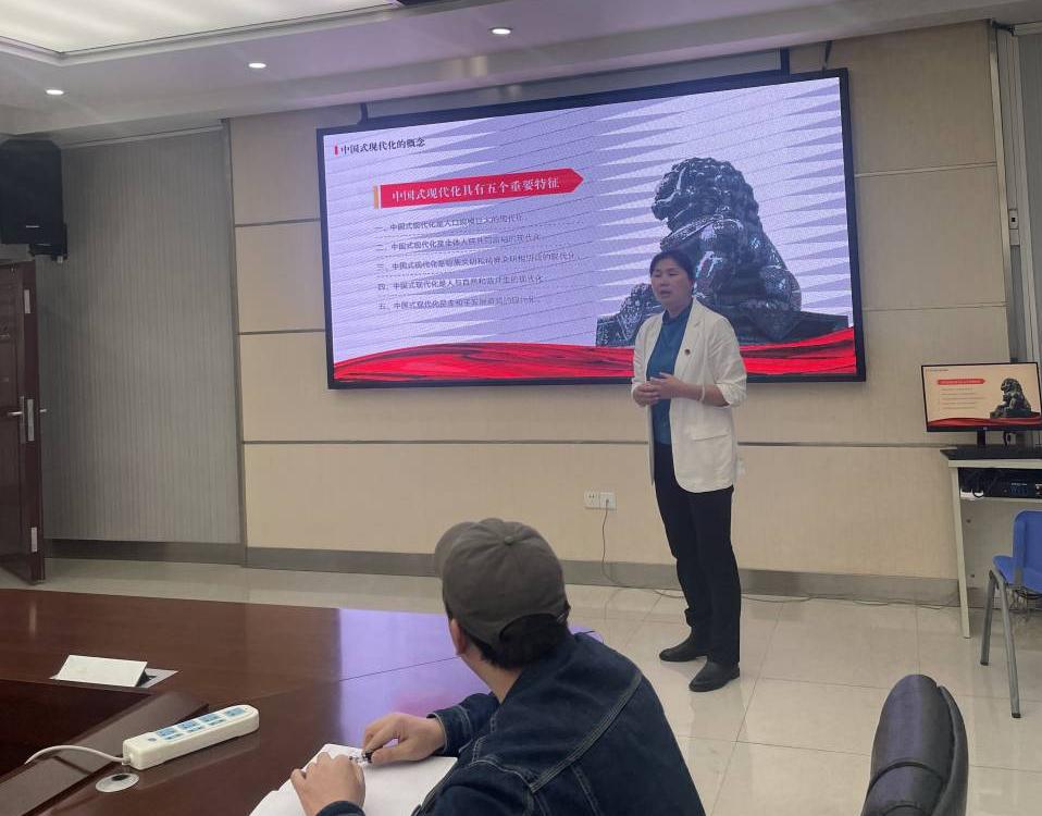 实现国家现代化,是近代以来中华民族孜孜以求的梦想。中国式现代化是我们党领导全国各族人民长期探索和实践中历经千辛万苦、付出巨大代价取得的成果。高秀丽以《学习领悟中国式现代化》为主题,从中国式现代化的概念、中国式现代化的来源、中国式现代化的目标以及中国式现代化如何实现四个方面为大家详细讲述了中国式现代化的科学内涵、本质要求和重大原则。