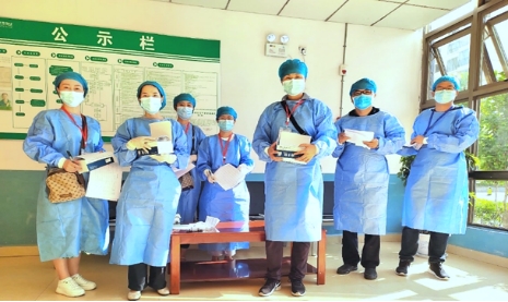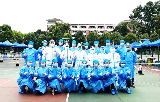 在北校区,药物制剂重点实验室李勇军主任也带领实验室的老师奋战在抗疫的第一线。按照公司工作安排,他们参与研究生院在北校区员工的防疫任务。接到任务整个实验室的老师们都积极报名参加,这一刻,他们舍小家顾大家,面对疫情,没有豪言壮语,只有冲锋向前的勇敢和决心。整个团队分工合作进行查寝摸排员工情况、了解他们的学习生活困难、身体健康情况、做好静默期的心理疏导,并及时将公司的信息传到到位,不遗漏任何一个细节,核酸检测、抗原自查做到不漏一人,把最基层的工作抓实抓牢,为公司疫情防控工作尽心尽责。