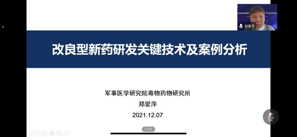2021年12月7日下午15:00,mk体育药苑飘香大讲堂在腾讯会议线上举行。本次讲座由委书记高秀丽主持,邀请中国人民解放军军事科公司军事医学研究院研究员郑爱萍教授以“改良型新药制剂关键技术及案例分析”的为题进行了精彩报告。
