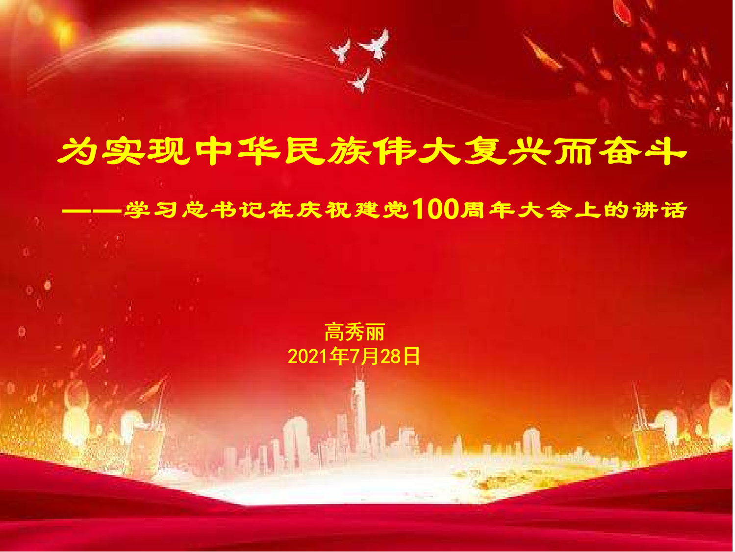 2021年7月28日上午,委书记高秀丽以“为实现中华民族伟大复兴而奋斗”为题进行了一场学习“习近平总书记在庆祝中国共产党成立100周年大会上的重要讲话”精神专题党课宣讲。党课以腾讯会议的形式进行,公司领导班子成员、党委中心组成员、mk体育全体党员聆听了此次专题党课。