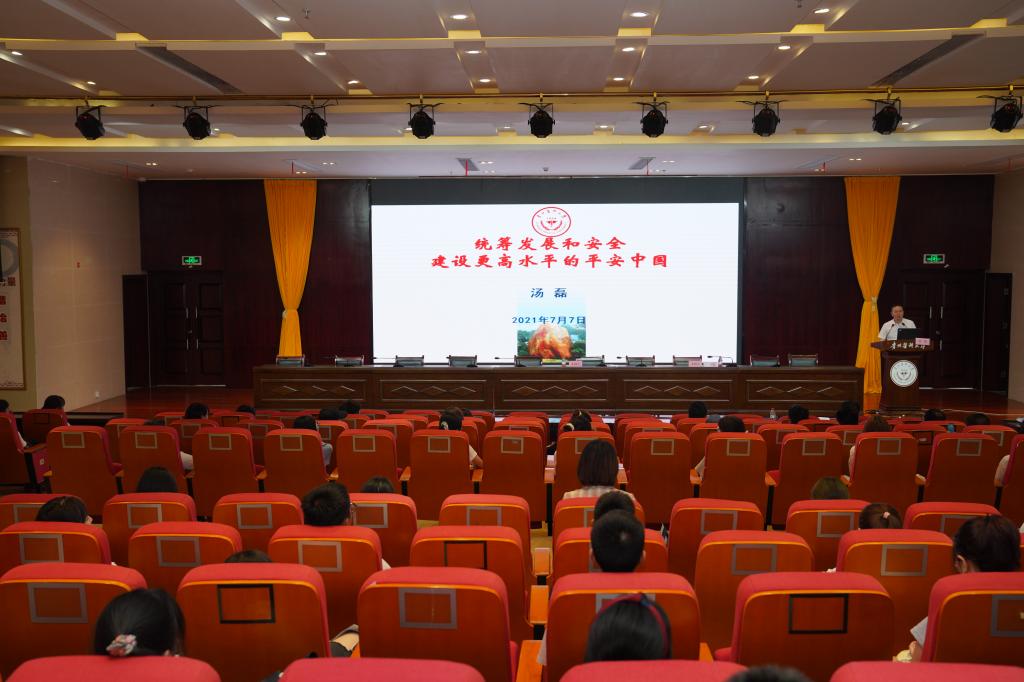 7月7日,副董事长汤磊在南校区道德讲堂作题为《统筹发展和安全,建设更高水平的平安中国》党课。员师生、副科级以上干部参加,委书记高秀丽主持。