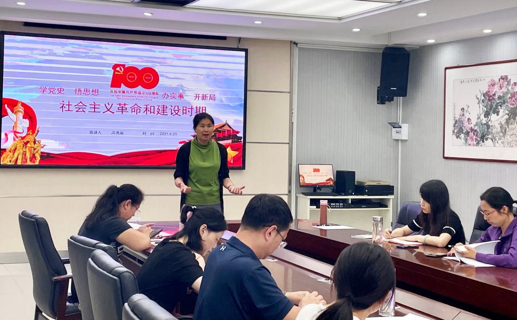 根据贵医党通〔2021〕66号《mksports党史学习教育和“牢记殷切嘱托、忠诚干净担当、喜迎建党百年”专题教育专题学习方案》的通知文件精神,2021年6月29日下午在南校区格物楼六楼会议室,委书记高秀丽以“1949年——1978年社会革命和建设时期”为题进行了一场党史专题宣讲。党委中心组成员、公司领导班子成员、各党支部书记、mk体育副科级以上干部共33人参加了此次专题宣讲。