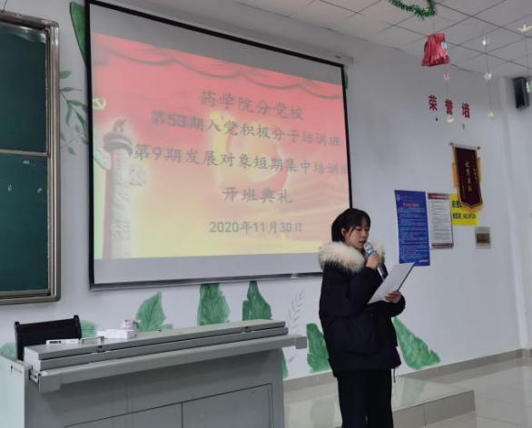 2020年11月30日中午12:10,mk体育第53期入党积极分子培训班、第9期发展对象短期集中培训班开班典礼在南校区1502教室举行。委书记高秀丽出席并讲话,公司党委委员、全体辅导员、班主任及全体学员参加,会议由公司党委副书记包欢欢主持。