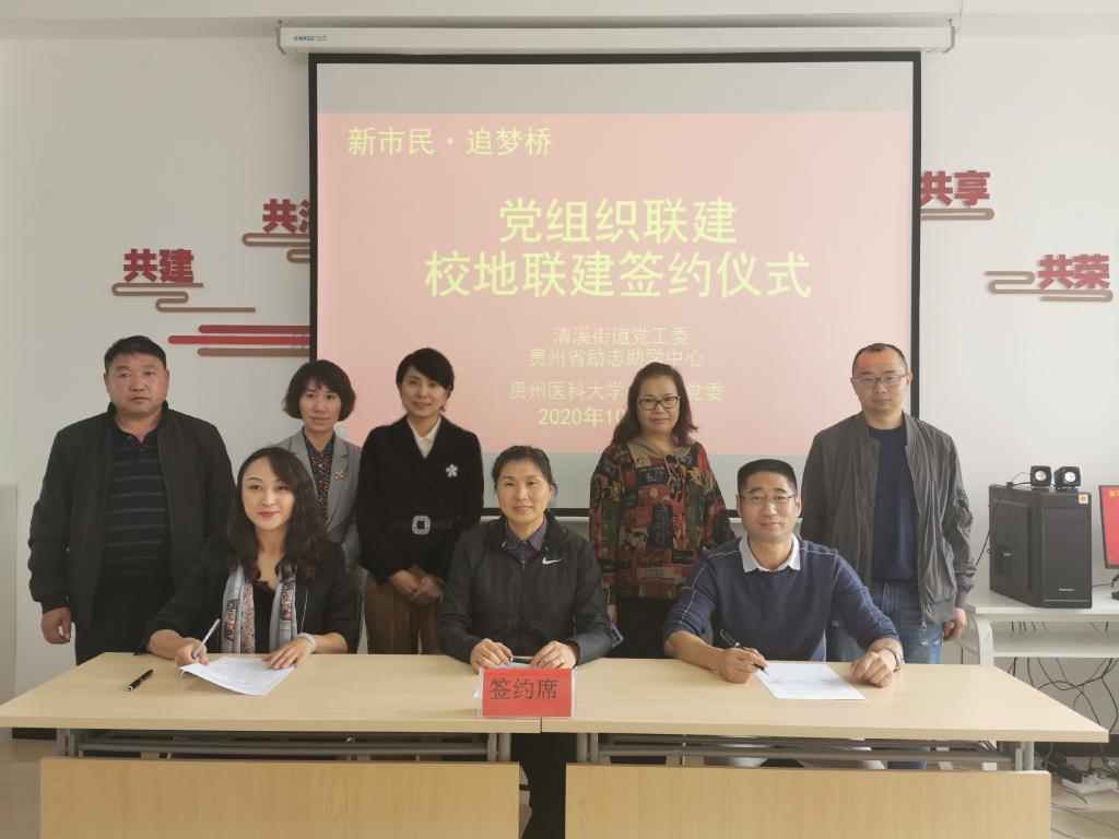 10月13日,委与花溪区清溪街道党工委、贵州省励志助学中心在花溪区清溪街道南溪苑社区活动中心二楼会议室中心共同签署《“新市民•追梦桥”校地联建框架协议》。委书记高秀丽、贵州省励志助学中心秘书长周巧明出席签约仪式并讲话,签约仪式由花溪区清溪街道党工委书记谢梅主持。委副书记王筑山、花溪区清溪街道党工委副书记汤正彩、贵州省励志助学中心副秘书长旷光霞、花溪区清溪街道南溪苑社区党支部书记程华强等出席签约仪式。