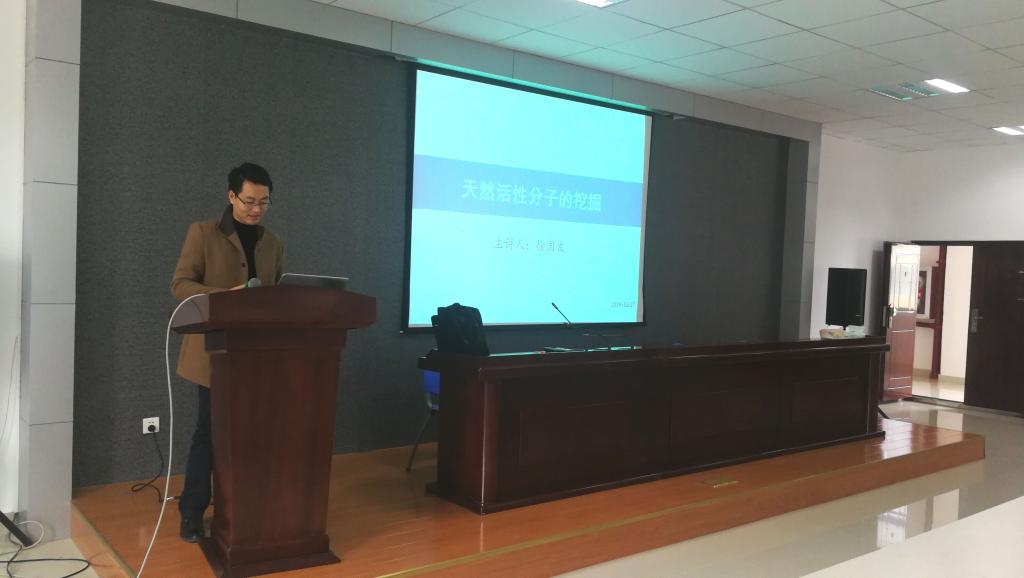 天然活性分子是药物的重要来源之一。但天然源(主要指植物以及微生物)代谢物复杂,徐国波博士通过怎样快速从其复杂体系中寻找到活性分子成为天然药物化学研究的重要任务为出发点。通过前期研究,汇报三种有效挖掘天然药物活性分子的手段。分别是:1.MRM技术(质谱多反应监测);2.细胞萃取技术;3.NMR技术(核磁共振谱技术)进行详细讲解。讲座结束后,参会的老师和同学与徐国波博士进行了深入的沟通交流。报告取得圆满成功。