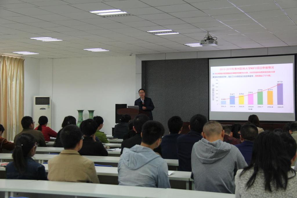 为推动药学院2020年度国家自然科学基金申报组织工作,11月6日,公司科技处郭兵处长、科技处综合科副科长柴月娥一行到mk体育开展2019国家自然科学基金申报总结暨2020年国基申报动员会。会议在格物楼六楼多媒体室召开,会议由经理沈祥春主持,mk体育各教研室负责人、教师60余人参加了本次动员会议。