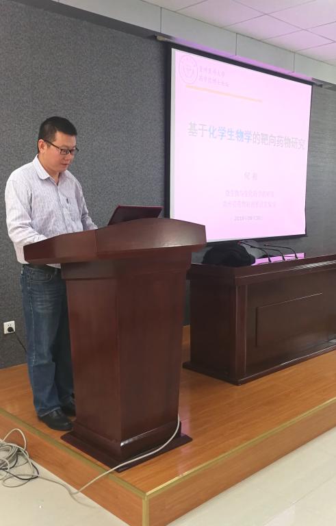 何彬博士以“基于化员工物学的靶向药物研究”为主题,介绍了化员工物学这门蓬勃发展的交叉学科。何彬博士介绍了化员工物学主要研究内容和学科特点,其基本思路和特点在于利用化学思想和手段去理解和调控生命体系,主要体现在以外源化学为核心思想,以化学探针为关键工具,以揭示生命本质并服务于化学为主要任务。并针对创新药物研究中的“靶标”和“先导化合物”的化员工物学问题,以化学探针为关键技术、结合结构生物学方法,开展组蛋白去乙酰化酶功能及其化学干预的基础研究,为创新药物研究提供候选新靶标发现以及先导化合物发现的理论基础和技术支撑。
