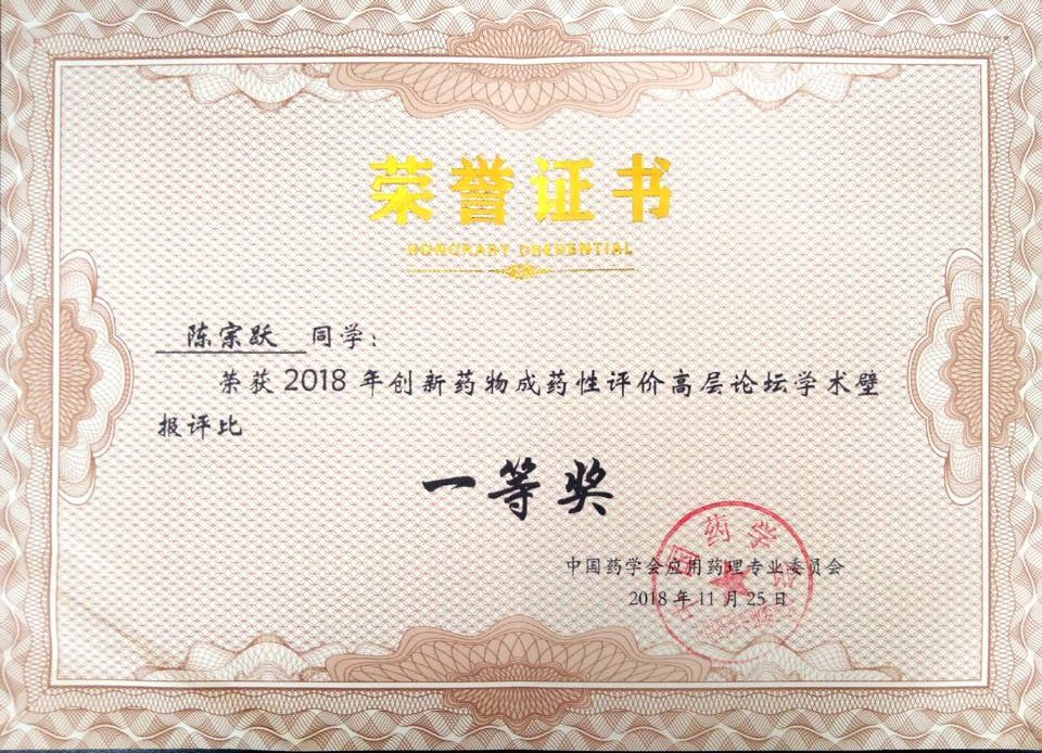 此次盛会是全国药学领域的学术盛宴,陈宗跃同学的获奖不仅是药学专家对公司员工科研能力和综合能力的嘉奖,同时也是对mksports公司产品的认可!!!