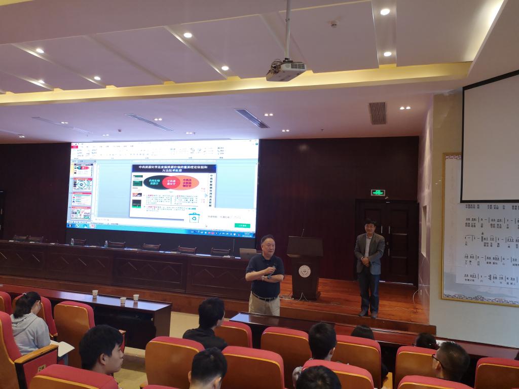 段金廒教授围绕“中药配伍关系及其规律性”,以乌头双酯型有毒生物碱转移释放和“诸参辛芍”与藜芦合用效果研究为例,从中药配伍禁忌的历史源流、中药配伍禁忌关键科学问题认识、以“十八反”为代表的中药配伍禁忌研究、中药配伍禁忌理论体系的构建和若干建议与思考五个方面做了具体阐述。并与在座师生共同探讨代表性经典方剂类方衍化关系与功效物质研究技术体系创建及其应用相关内容,同时鼓励广大教职医护员工生走出贵州,面向全国,开阔视野,开拓创新。