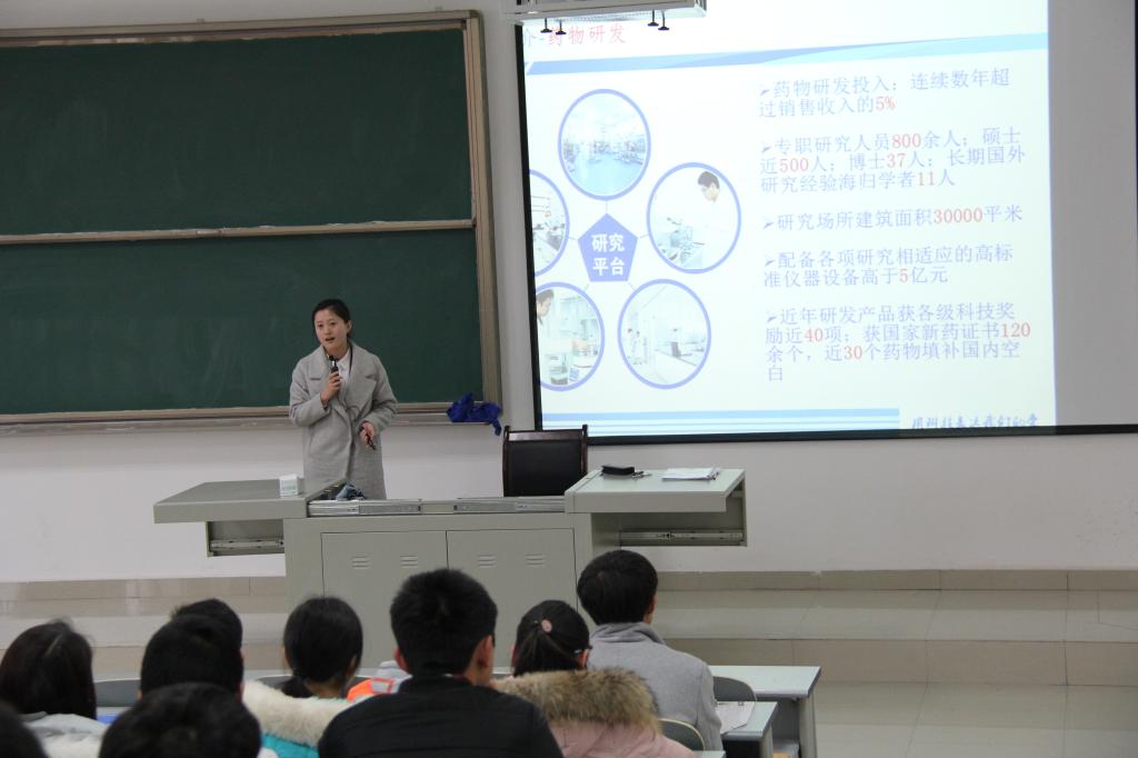 3月9日,公司特邀请了齐鲁制药有限公司为公司2017届毕业生作第四场就业推介会,该公司贵州省区经理任志、研发生产技术经理杨远华、学术推广经理姚雪等一行六人作就业推介,80余名毕业生参加推介会。