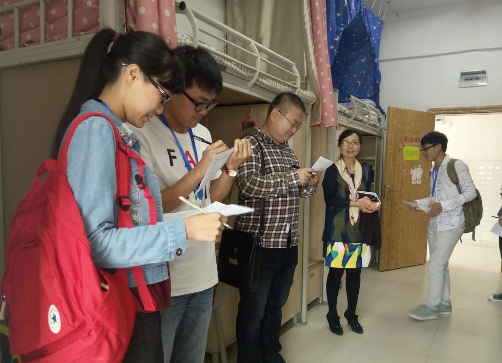 10月24中午公司进入了活动第二阶段的评选,党委书记席晓岚、党委副书记徐贵荣、员工管理科、分团委、研究生负责老师王磊、各级辅导员以及员工会部分成员参加了此次检查。秉承着公平、公正、公开的原则,评比队伍分为两组,分别对六栋、八栋、九栋宿舍进行了卫生、用电、物品摆放以及室内外文化氛围布置等方面进行了评比。评比过程中,党委书记席晓岚指出了一些寝室所存在的问题,嘱咐同学们要注意用电用水安全,并对没有打扫干净的寝室进行了严厉的批评和督促;党委副书记徐贵荣建议同学们加强寝室文化氛围的建设,要求同学们多读书,读好书,学好专业知识。经过认真评选共评选出六间文明寝室:研究生寝室6267、女寝8309、8673、8210、8222以及男寝9614。
