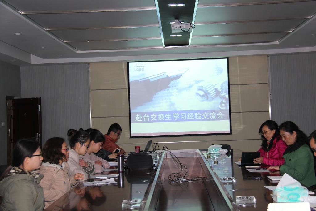 首先,王栋等参加赴台交流学习的6位同学先后以PPT的形式介绍了他们在台湾学习的感受、经验。