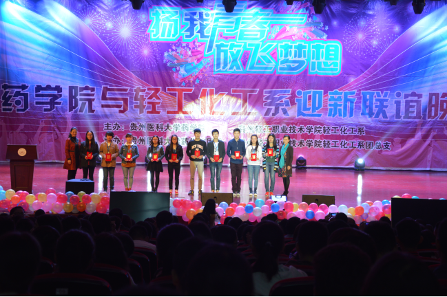 11月5日晚,在mksports大礼堂成功举办了mk体育和贵州轻工职业技术公司轻工化工系以“扬我青春 放飞梦想”为主题的2015级迎新联谊晚会。委书记席晓岚、党委副书记徐贵荣;贵州轻工职业技术公司党委副书记杜平、副经理刘天德、员工处处长李宏昌、机关党总支书记黄涛、轻工化工系党总支书记余寒、主任王娟以及两院系的党委委员、学科负责人以及团委、员工科、辅导员老师出席了此次晚会。