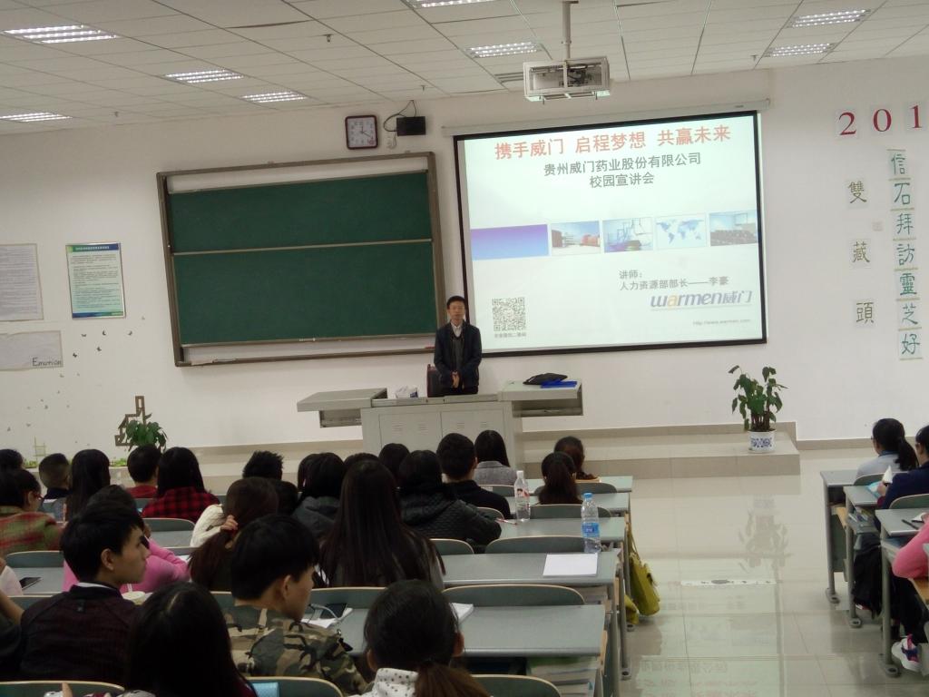 应公司邀请,2015年11月3日贵州威门药业股份有限公司来公司为员工作了一次校园就业推介会,吸引了mk体育各年级员工积极参与。