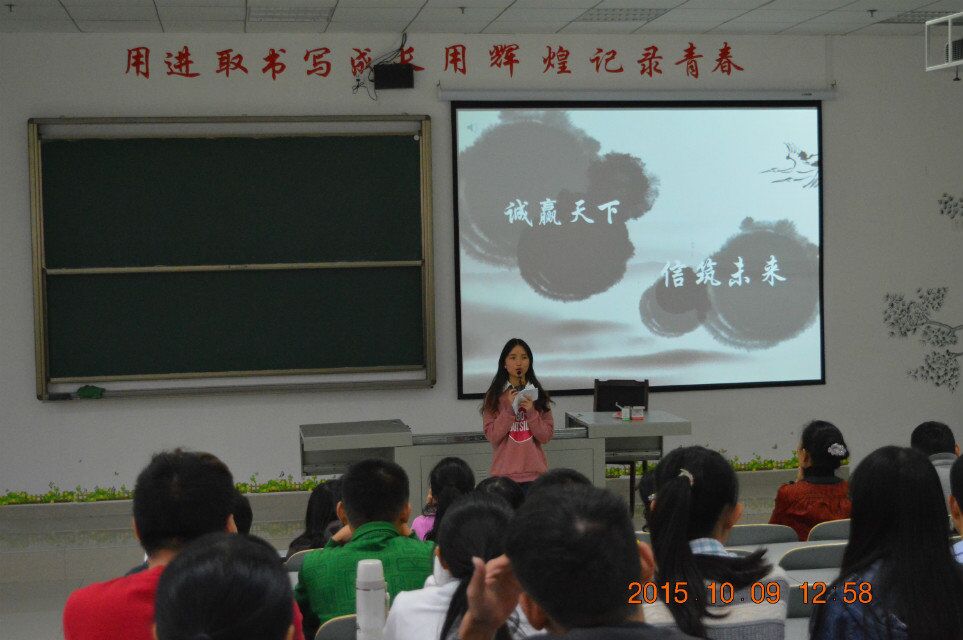 大赛共设一等奖1名,二等奖2名,三等奖3名。活动开始,各参赛班级围绕着"诚信"这个中心词做出了不同的诠释,在ppt中穿插的视频、班会照片及典故等多媒体资料引起了大家的兴趣及思考。从诚信的含义到诚信调查,从“三严三实”中关于诚信的重要讲话到“诚信进课堂”活动,比赛内容多变、气氛活跃。每个参赛班级按抽签顺序一一演讲完毕后,席晓岚书记对大赛进行了总结和点评,并对同学们的努力予以了肯定。