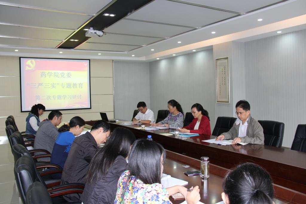 ,委在南校区格物楼六楼会议室召开“三严三实”专题教育第二次专题学习研讨。会议由委书记席晓岚主持,党委副书记徐贵荣,药物制剂重点实验室副主任李勇军,党委委员和各党支部书记参加学习。
