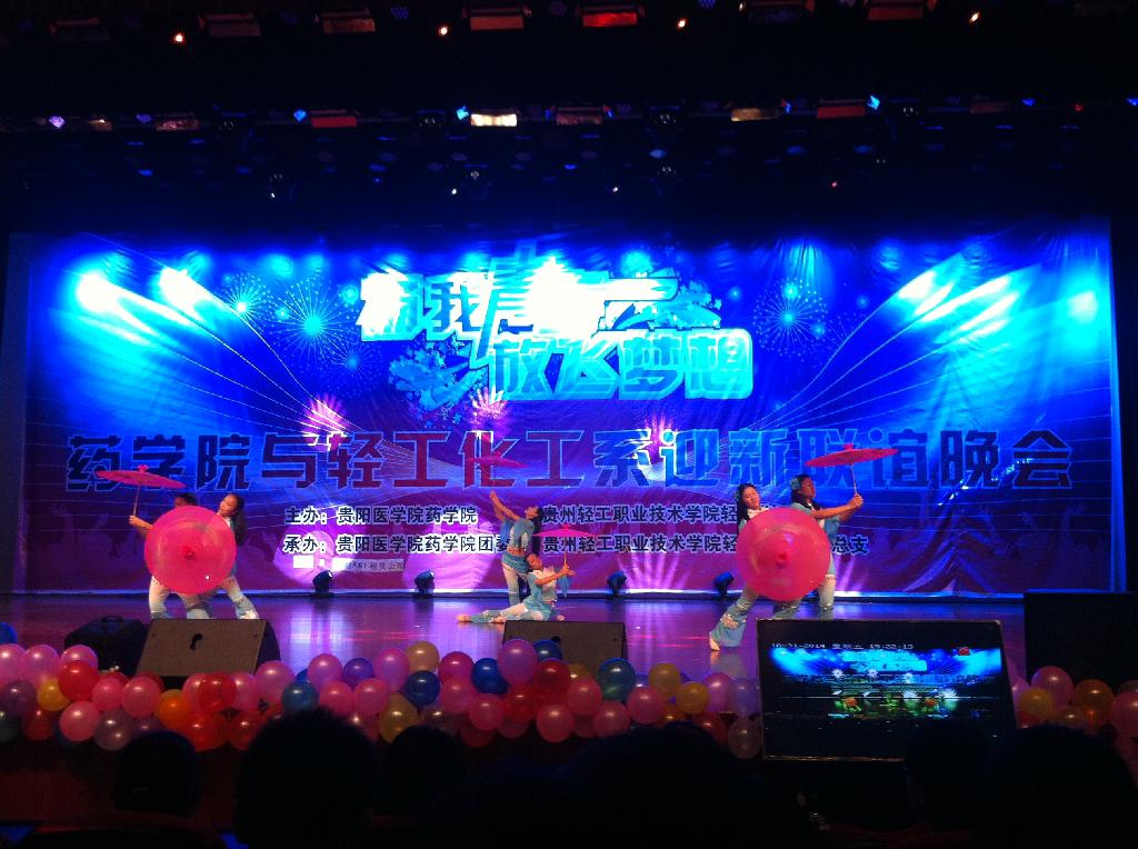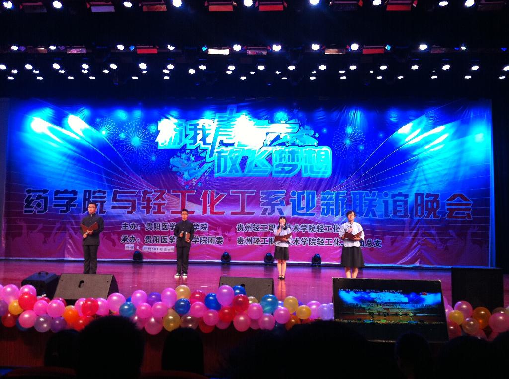 10月31日晚,在贵阳医公司大礼堂成功举办了贵阳医公司mk体育和贵州轻工职业技术公司轻工化工系以“扬我青春 放飞梦想”为主题的2014级迎新联谊晚会。贵州轻工职业技术公司党委副书记杜平、员工处处长宋奕、轻工化工系党总支书记黄涛、委书记席晓岚、党委副书记徐贵荣以及两院系的党委委员、学工老师出席了此次晚会。