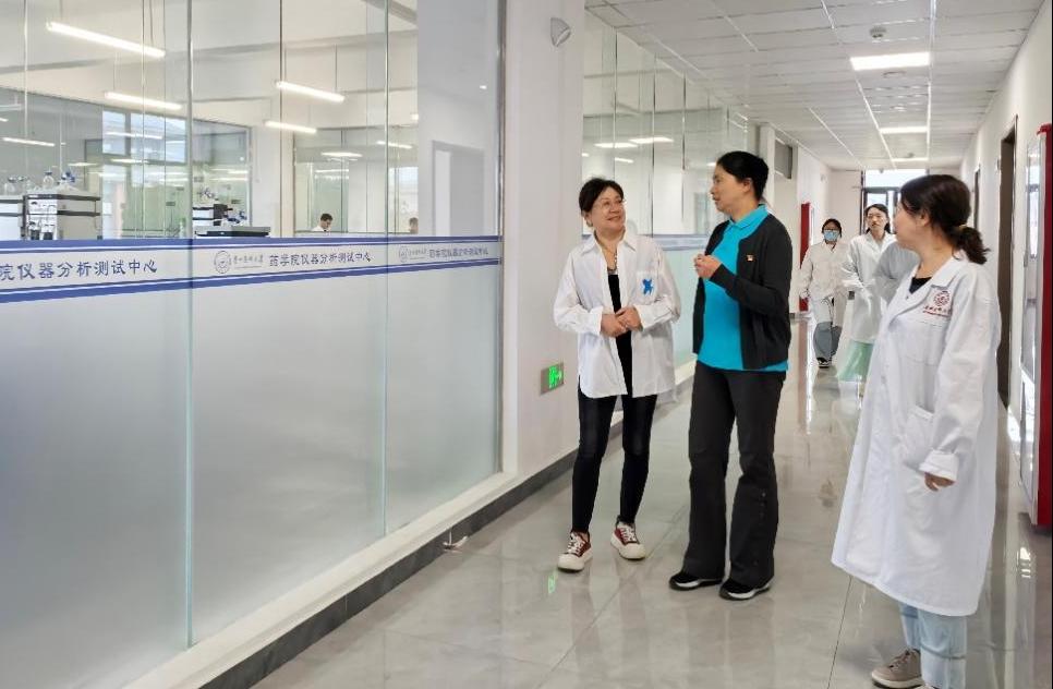 活动当日,在委书记高秀丽、党委副书记包欢欢的陪同下,贵州太和集团制药有限公司、朗致集团贵州制药有限公司总经理高爱琴一行,实地走访调研mk体育科研平台,并与正在开展实验的师生进行了亲切交流。
